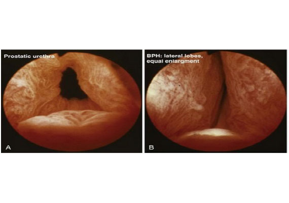 Prostate cancer, if present, tends to form at the periphery of the gland, and is not often the cause of urinary symptoms. It can however occur together with BPH.